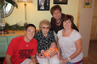 The other grandma that Lukas got to meet was his Great-Great-Grandma Hoffman. Yes that is right it is Erin's Great Grandma. She is 95 years old and was so excited to meet her 5th great-great grandchild.
